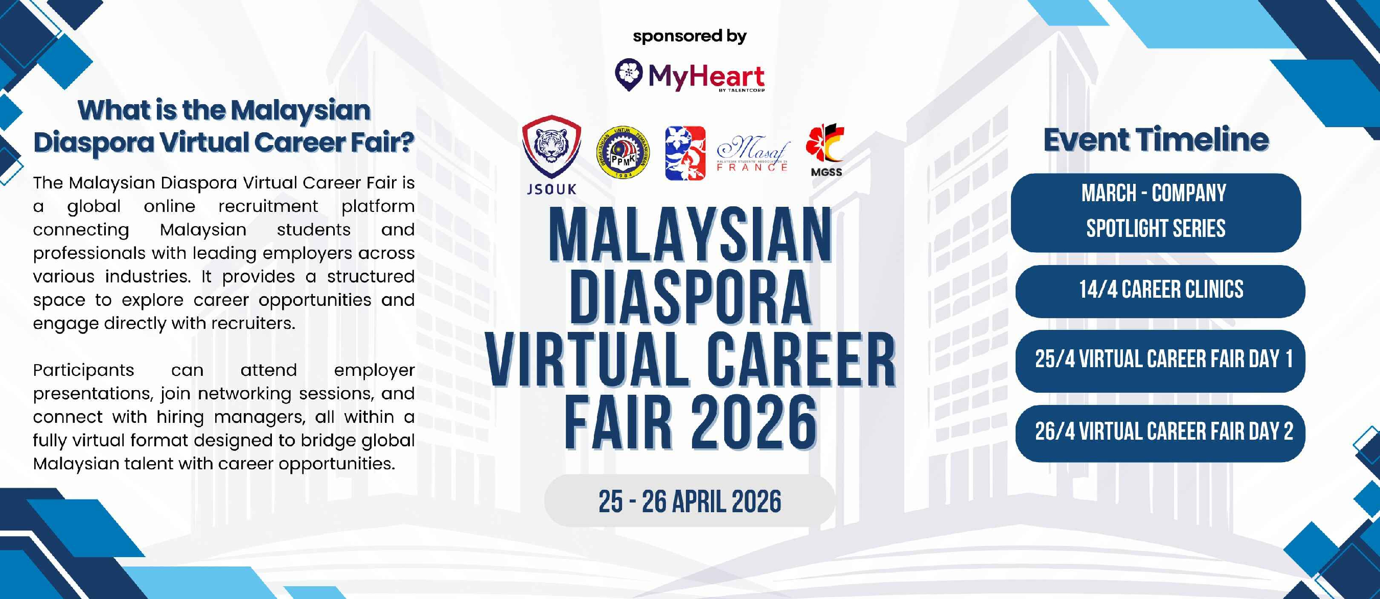 Participants can attend employer presentations, join networking sessions, and connect with hiring managers, all within a fully virtual format designed to bridge global Malaysian talent with career opportunities.